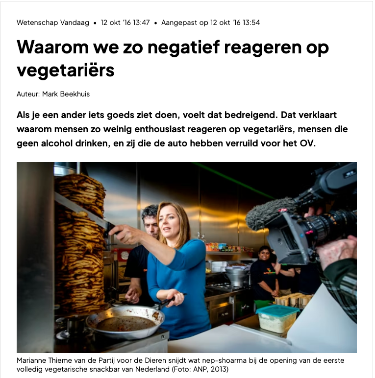 BNR nieuwsradio – waarom we zo negatief reageren op vegetariërs