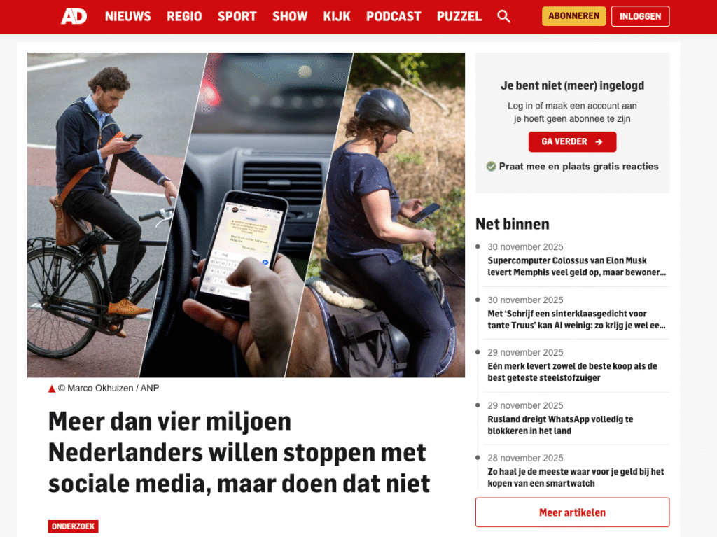 ad.nl – meer dan 4 miljoen Nederlanders willen stoppen met social media, maar doen dat niet
