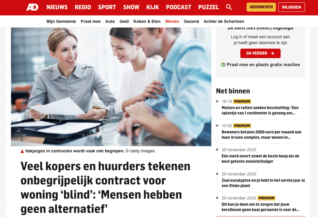 ad.nl – Veel kopers en huurders tekenen een onbegrijpelijk contract voor woning ‘blind’: “Mensen hebben geen alternatief”