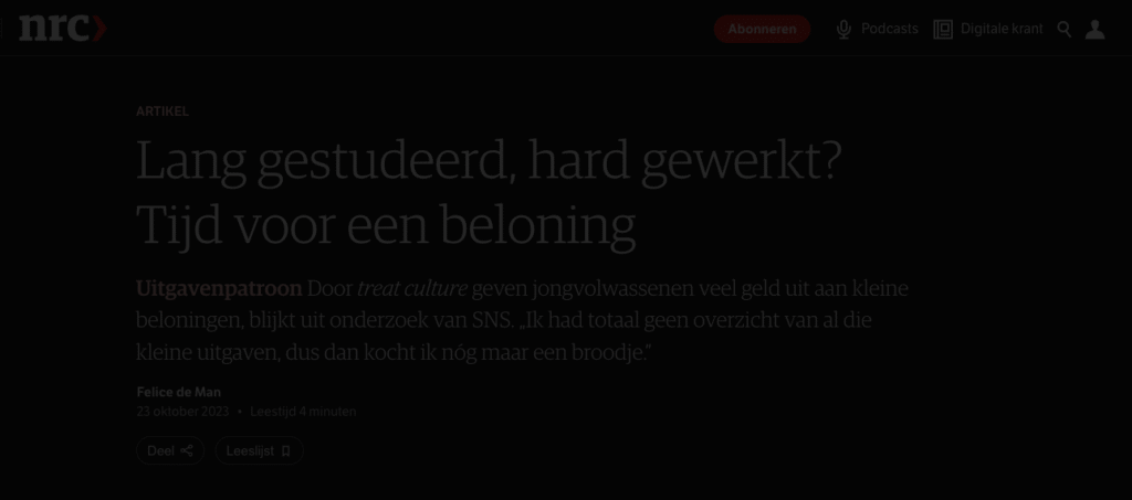Door treat culture geven jongvolwassenen veel geld uit aan kleine beloningen, blijkt uit onderzoek van SNS. “Ik had totaal geen overzicht van al die kleine uitgaven, dus dan kocht ik nóg maar een broodje”.