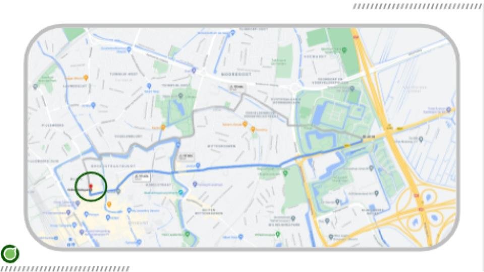 Wat is motivatie eigenlijk precies? Laten we hiervoor de analogie van een routekaart gebruiken. De meeste lezers zullen bovenstaande afbeelding wel herkennen en regelmatig gebruiken (thank you google maps!). Stel je voor dat je doel is om naar kantoor te gaan (op de afbeelding weergegeven binnen het groene cirkeltje). Motivatie kun je vergelijken met de drijvende kracht die ervoor zorgt dat je op je fiets stapt en daadwerkelijk naar kantoor gaat. Deze kracht verschilt per persoon en situatie. Sommige mensen zijn niet gemotiveerd en stappen niet op de fiets. Sommige mensen zijn een beetje gemotiveerd en fietsen langzaam in de richting van kantoor. Sommige mensen zijn supergemotiveerd, springen op hun fiets en racen in hoog tempo naar kantoor. Motivatie, de drijvende kracht, gaat niet alleen over de snelheid waarmee je fietst, maar ook de route die je neemt en de tussenstops die je onderweg maakt. Dus, motivatie gaat over alle stappen die je neemt op de weg naar het bereiken van je doel.