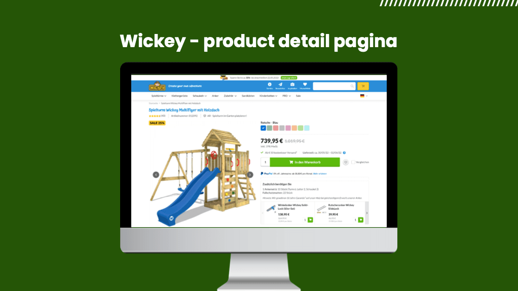 Wickey is een online aanbieder van houten speeltoestellen voor in de tuin, zoals klimrekken, glijbanen, speelhuisjes en schommels. Samen met Wickey optimaliseren we hun website om beter aan te sluiten bij de ervaring en behoefte van de klanten, en op die manier Wickey te helpen verder te groeien. In deze blog beschrijf ik experimenten die we voor Wickey hebben gedaan.